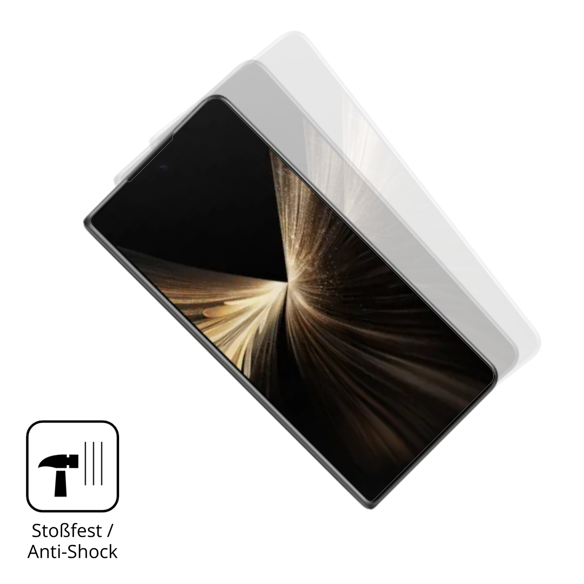 Die hier verwendete, nicht splitternde Anti-Shock-Technologie ist die beste Wahl, falls Dein Gerät herunterfällt und du es vor einem Display Glasbruch schützen möchtest.