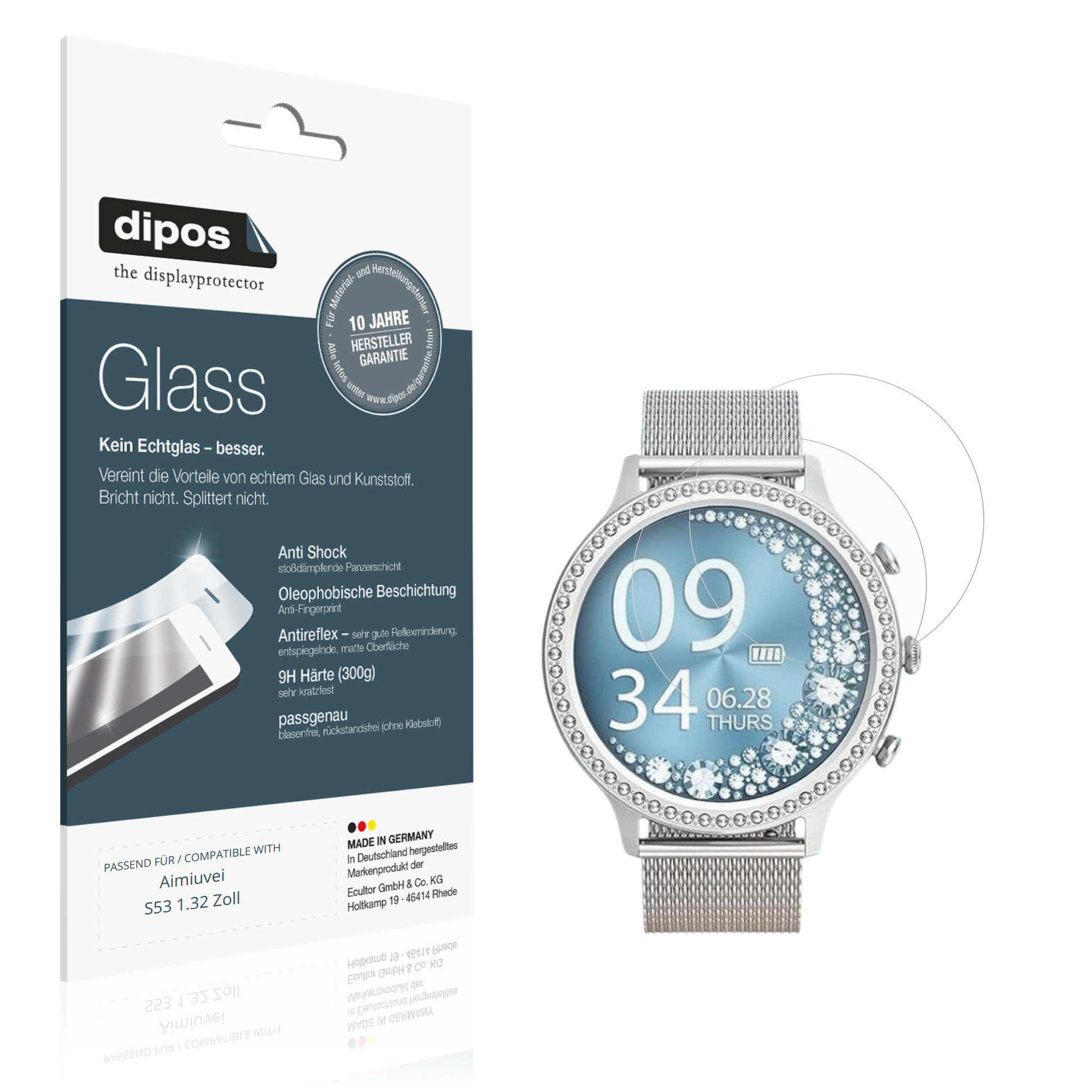 2 Stück dipos Glass Antireflex passend für Aimiuvei S53 1.32 Zoll