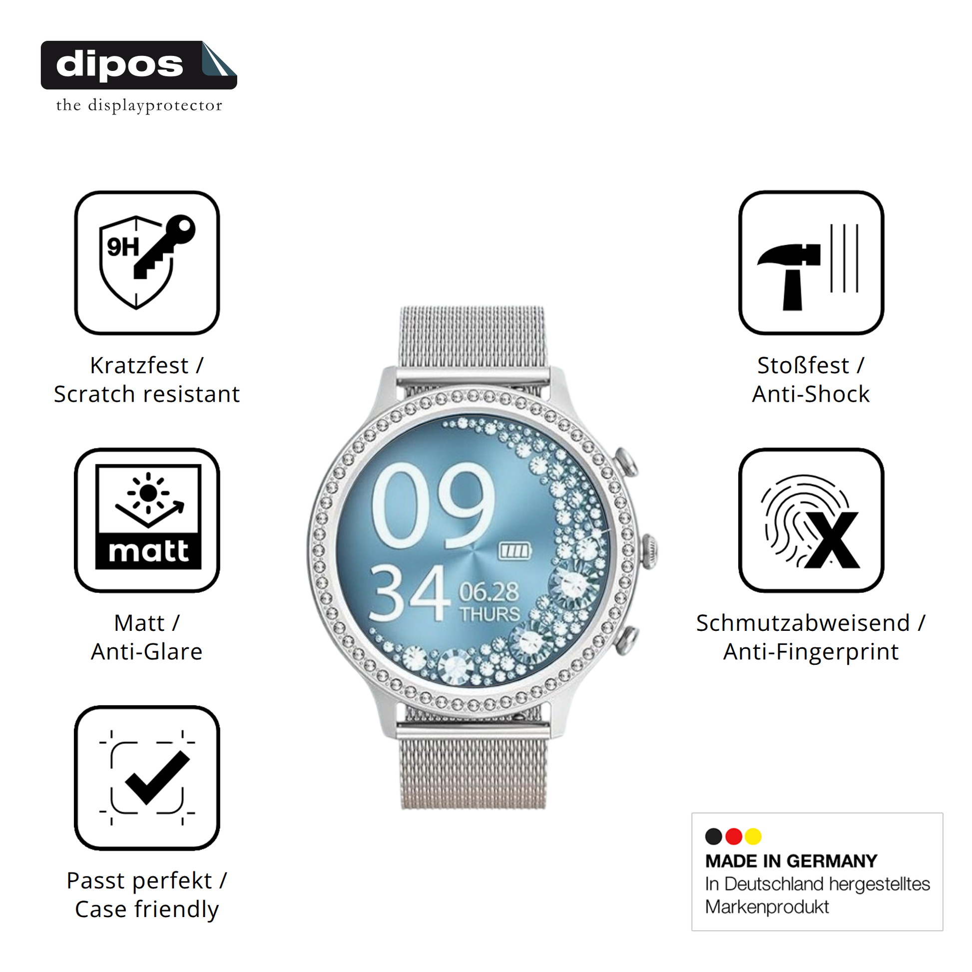 mit 9H Härte (300g) und Anti-Shock-Schicht. -