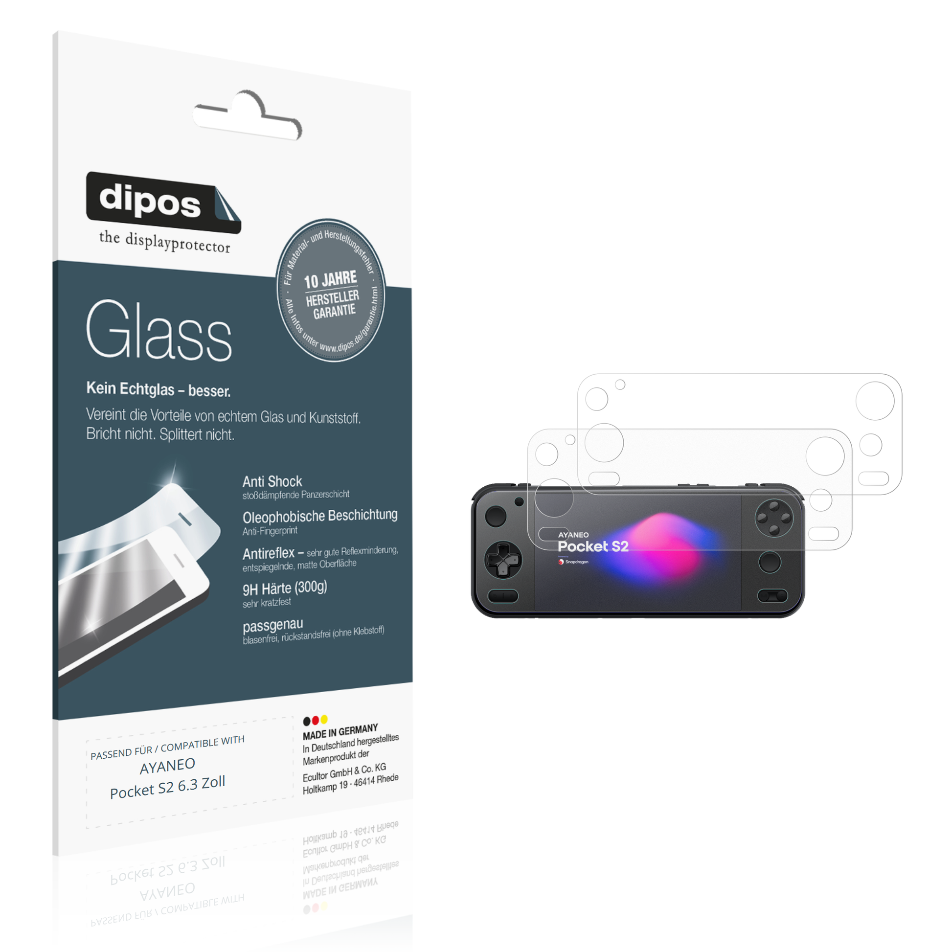 2 Stück dipos Glass Antireflex passend für AYANEO Pocket S2 6.3 Zoll