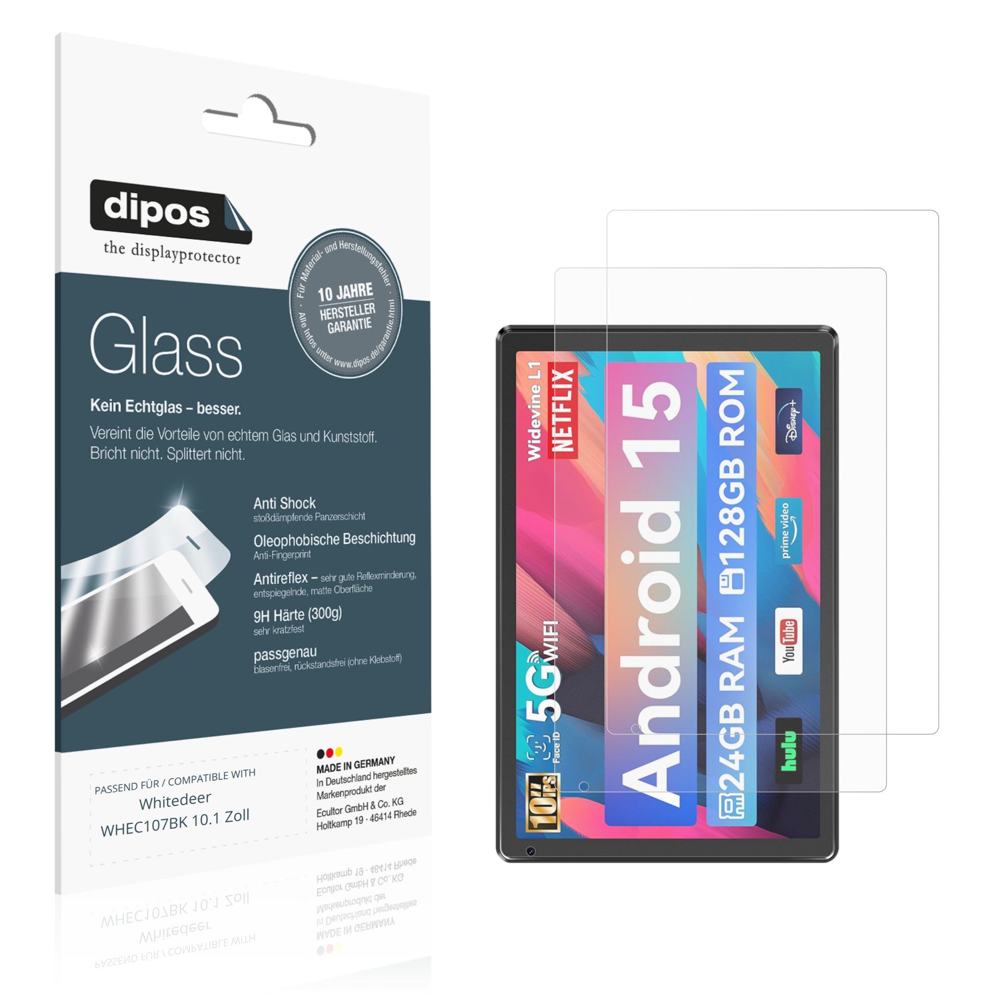 2 Stück dipos Glass Antireflex passend für Whitedeer WHEC107BK 10.1 Zoll