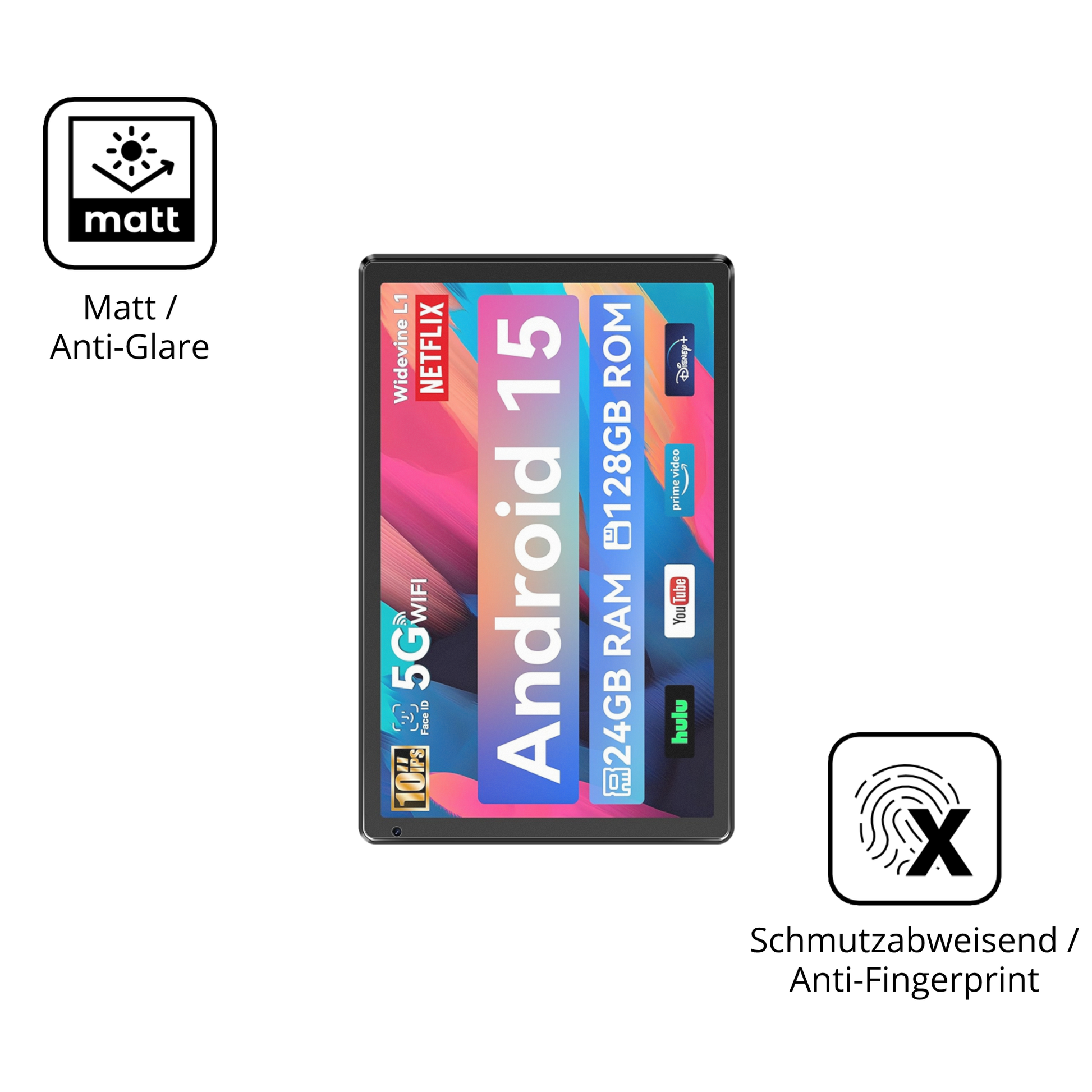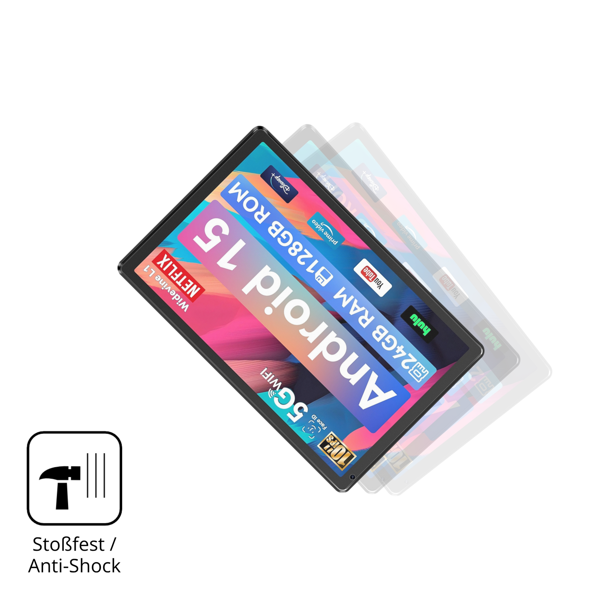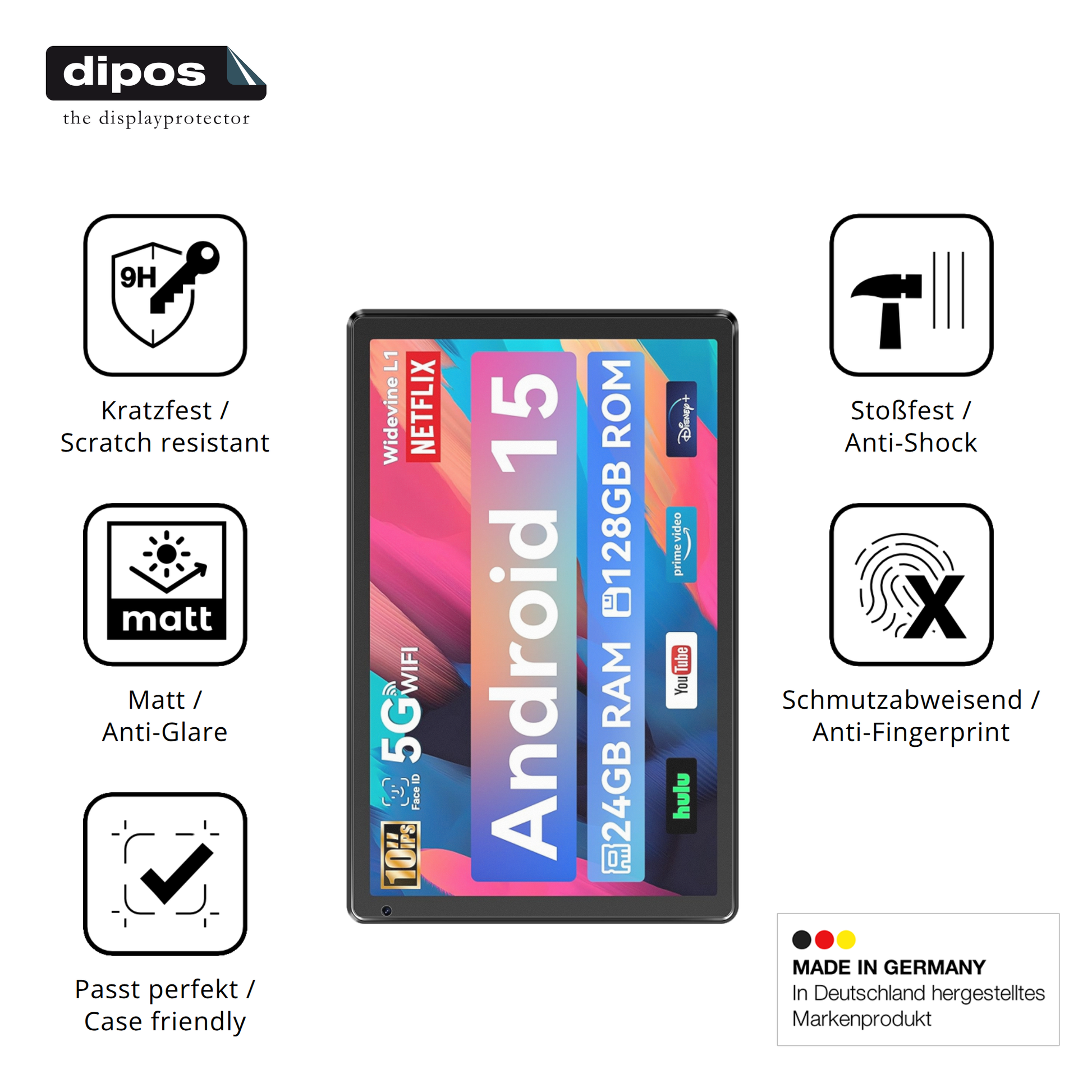 Anti-Shock: Stoßdämpfende, absorbierende Materialschicht für robusten Schutz des Displays. Idealer Displayschutz, wenn Ihr Gerät an die Tischkante prallt oder herunterfällt.