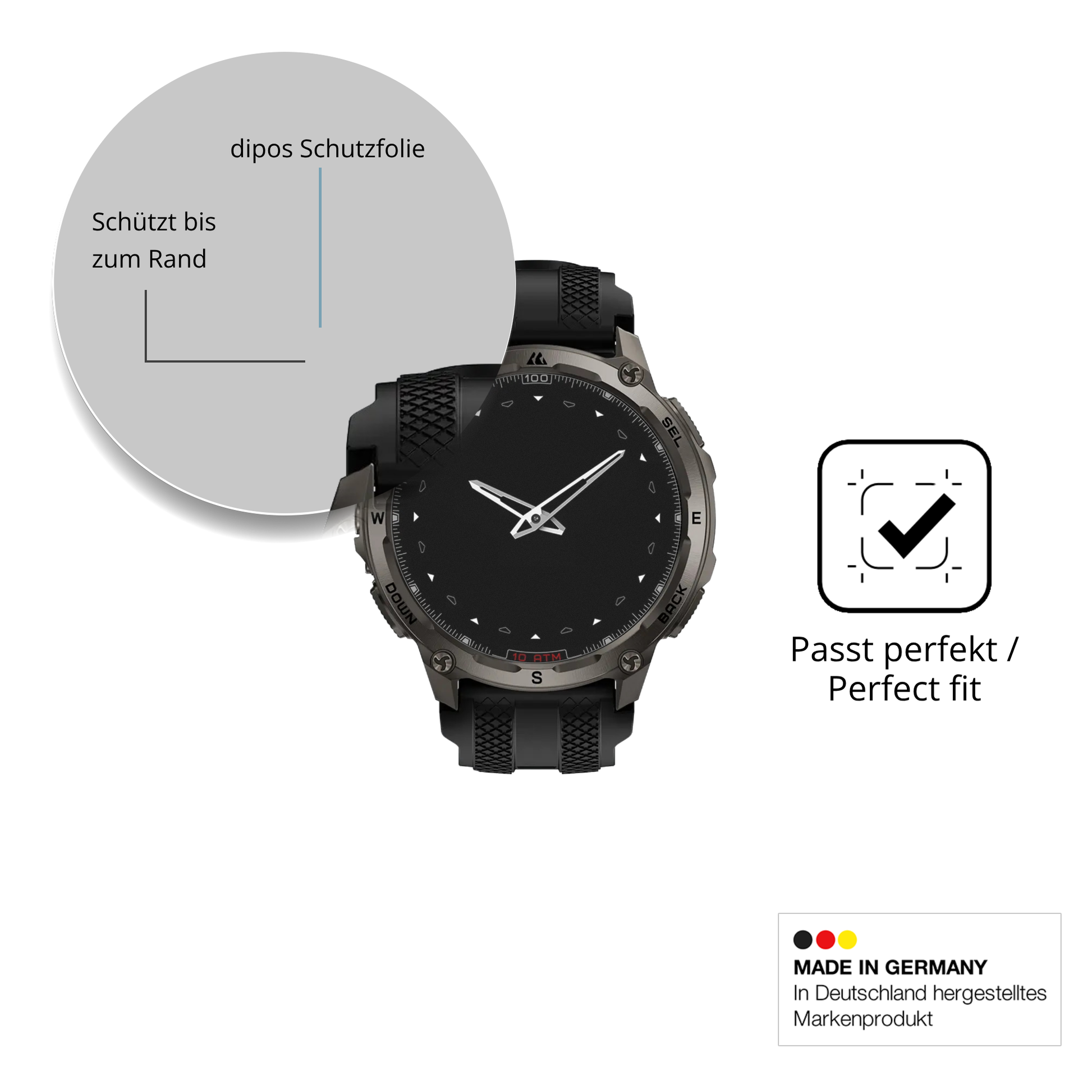 Ideal für Outdoor. Angenehme Touchscreen-Haptik, deutliche Minimierung von Fingerabdrücken. Bildschärfe und Farbsättigung werden minimiert. Made in Germany! -