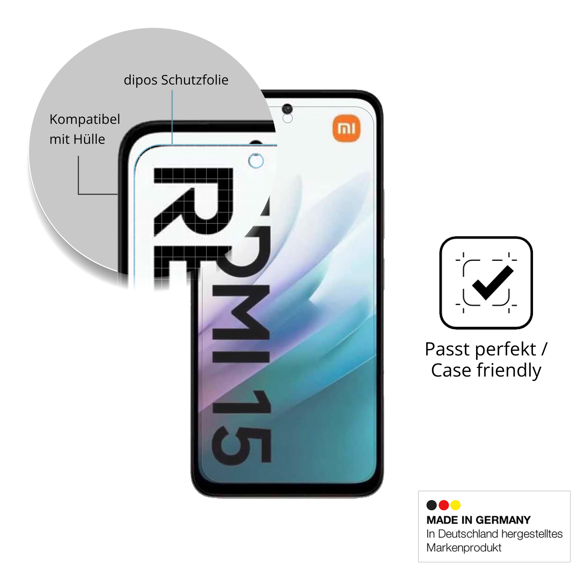 Die dipos Antireflex Schutzfolie ist mit nur ca. 0,12 mm extrem dünn und unsichtbar, bewahrt das ursprüngliche Design und die Haptik deines Xiaomi Redmi 15 4G. Der Touchscreen und die Fingerabdruckerkennung bleiben wie gewohnt reaktionsschnell und präzise. -