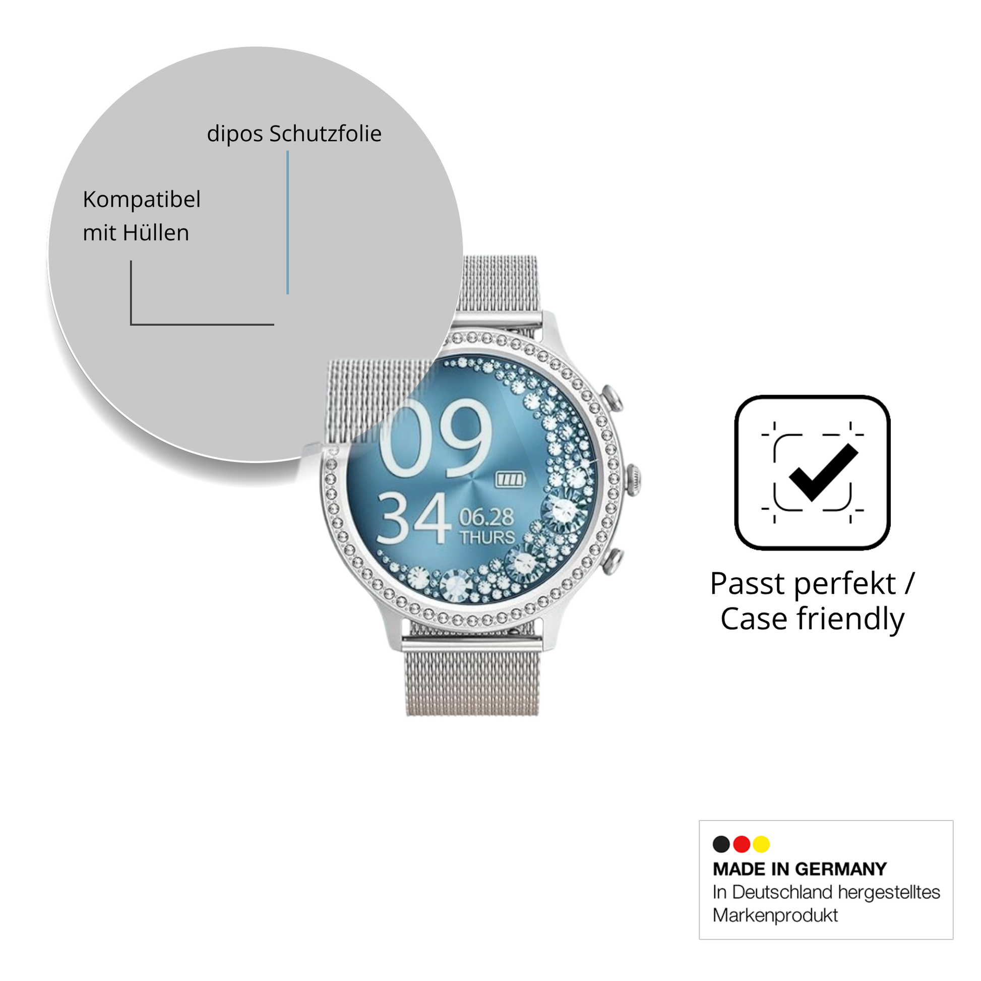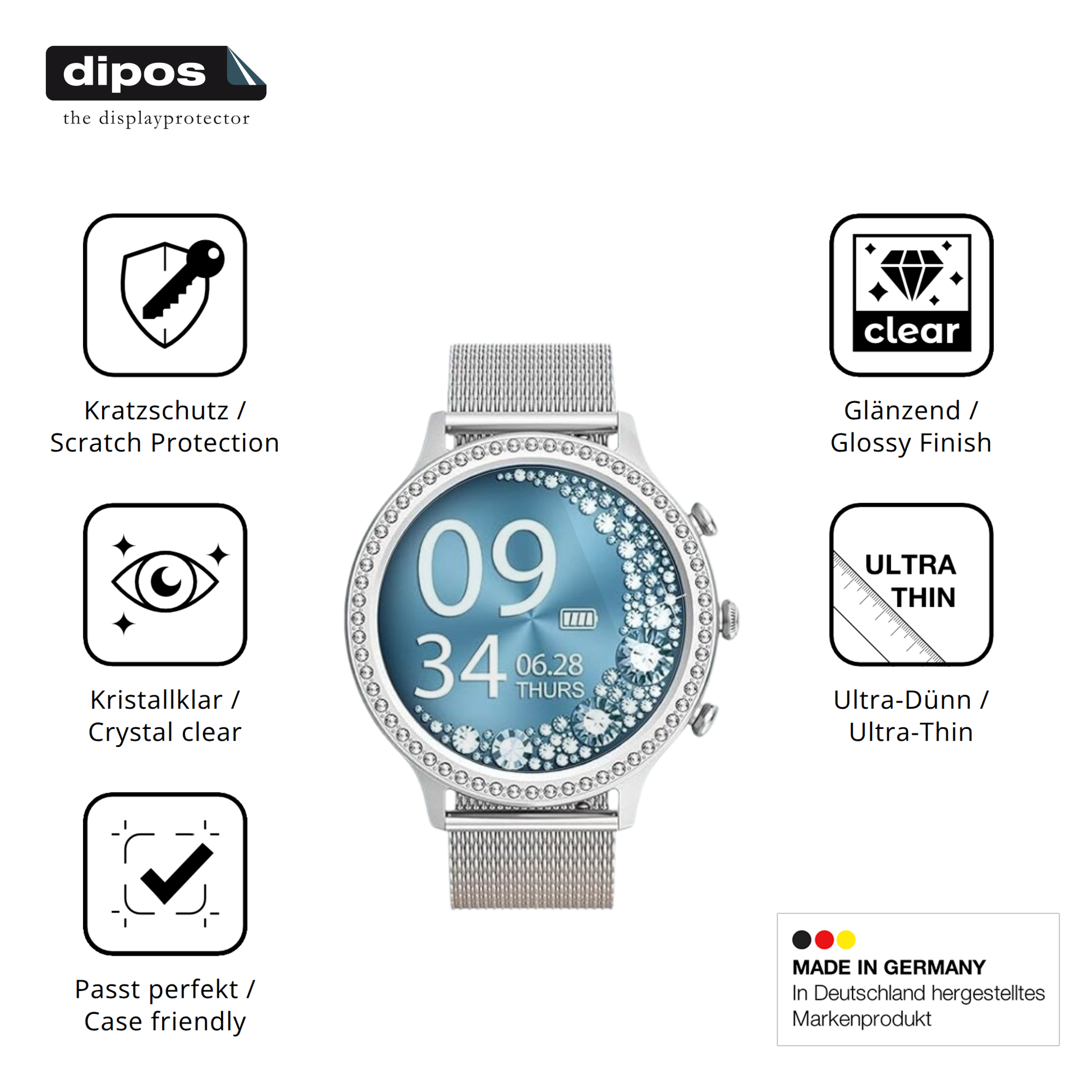 Starker Schutz trotz schlanker Form. Viele denken, dass dicker gleich besser ist, aber das stimmt nicht. dipos Crystalclear hat in Labortests bewiesen, dass auch eine hauchdünne Schicht hervorragenden Schutz bieten kann. Dank der speziellen Materialzusammensetzung und einer absorbierenden Schicht schützt diese Folie dein Display zuverlässig vor Kratzern und Stößen.