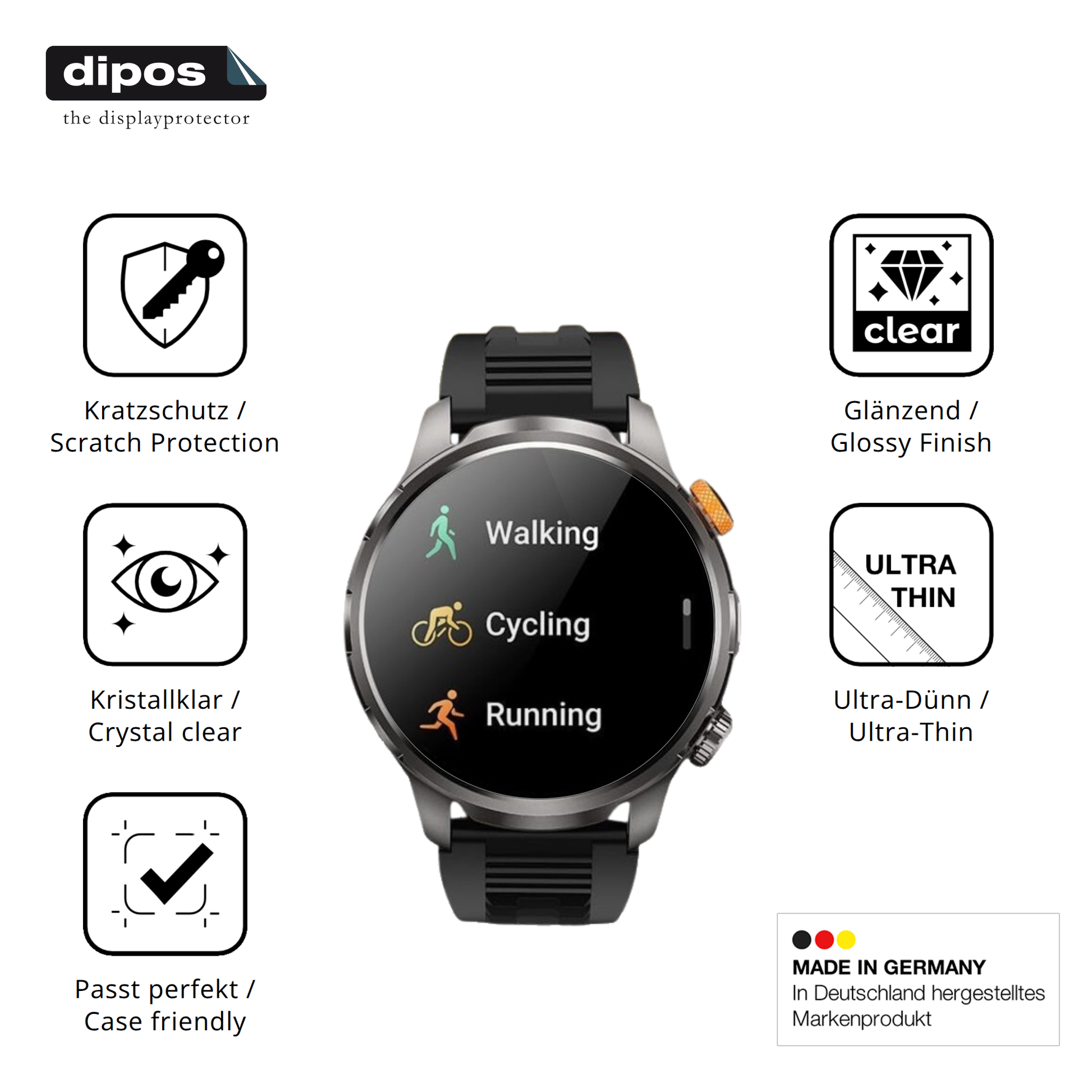 Starker Schutz trotz schlanker Form. Viele denken, dass dicker gleich besser ist, aber das stimmt nicht. dipos Crystalclear hat in Labortests bewiesen, dass auch eine hauchdünne Schicht hervorragenden Schutz bieten kann. Dank der speziellen Materialzusammensetzung und einer absorbierenden Schicht schützt diese Folie dein Display zuverlässig vor Kratzern und Stößen.