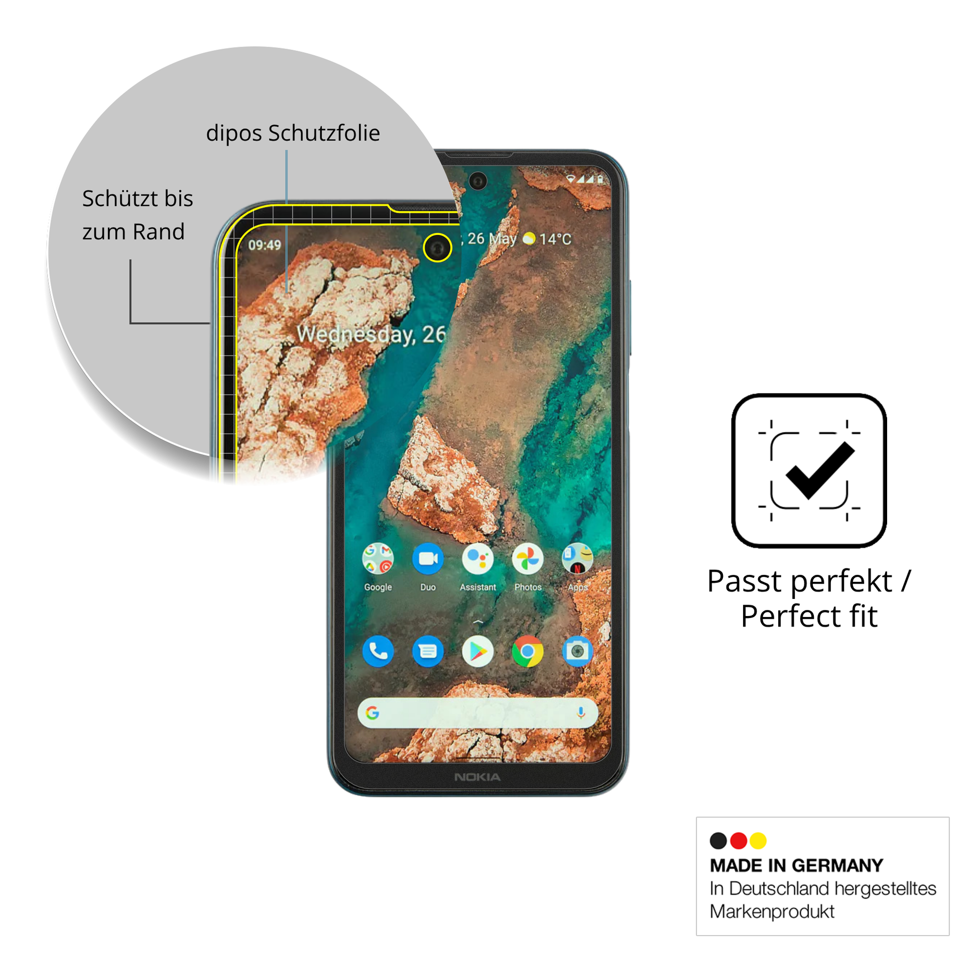Wenn dein Nokia X20 herunterfällt, ist dein Display optimal geschützt. Die Folie splittert nicht und schützt wirksam vor Glasbruch & Kratzern. Das ist wichtiger als extreme Härte wie 9H. -